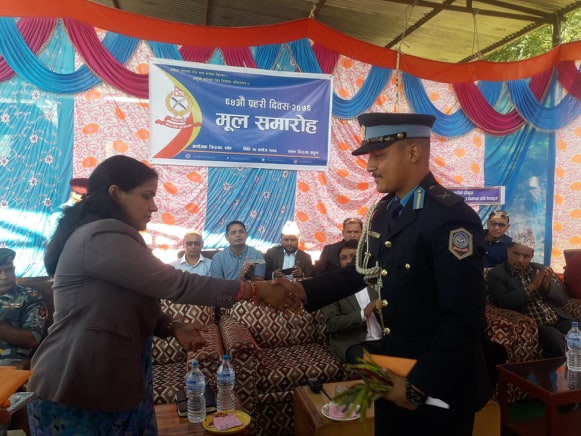 कार्यक्रममा जिल्लामा उत्कृष्ट कार्य गर्ने प्रहरी कर्मचारीहरुलाई प्र.जि.अ.कल्पना घिमिरे नेपालले पुरस्कार प्रदान गर्नुका साथै समाजमा घट्ने अपराध नियन्त्रण तथा सफल अनुसन्धान गरी शान्ति सुरक्षा स्थापना गर्न नेपाल प्रहरीले खेलेको भुमिकाको प्रंशसा गर्दै जिल्ला प्रहरी कार्यालय पर्वतले शान्ति सुरक्षा तथा अमनचयन कायम गर्न प्रहरीसंगको सहकार्य अपरिहार्य रहेको भन्दै प्रहरी कर्मचारीहरुलाई आवश्यक निर्देशन समेत दिनु भएको थियो ।