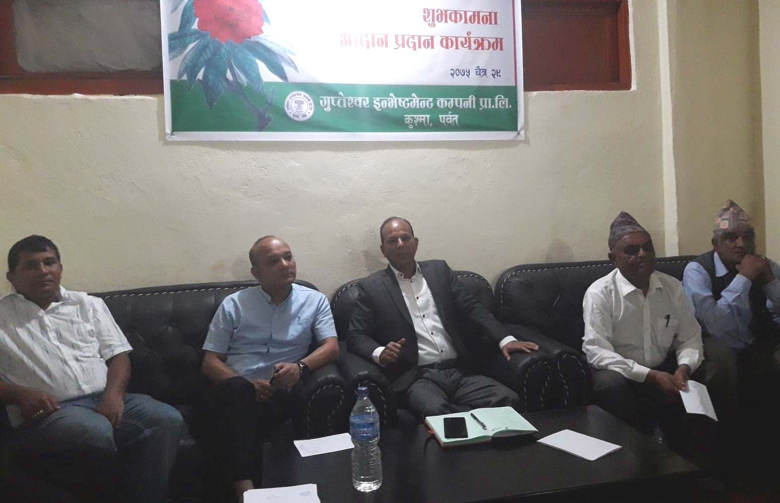 पर्वत– पर्वतको कुश्मामा संचालित वित्तिय संस्था गुप्तेश्वर इन्भेष्टमेण्ट कम्पनीको आयोजनामा शुभकामना आदानप्रदान कार्यक्रम सम्पन्न भएको छ ।