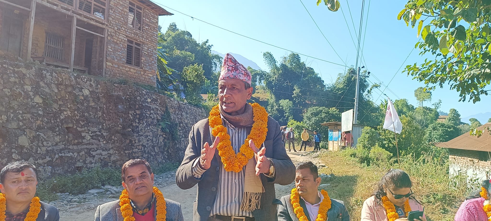 यसैगरी नेकपा एमाले प्रदेश सभा क का उम्मेदवार भक्त कुँवरको चुनावी कार्यक्रम जलजला गाउँपालिका वडा नं. ९ बनौमा सम्पन्न भएके छ । बनौमा आयोजित चुनावी सभामा बोल्दै उम्मेदवार कुँवरले नेकपा एमालेको सरकारले वितग पाँच वर्षमा बनौसम्मको सडक कालोपत्रे गरिसकेको बताउँदै अव यस क्षेत्रको खानेपानीको समस्यामा समधान गर्न पहल गर्ने बताउनुभयो । साथै उहाँले बनौ क्षेत्रको समग्र विकासका लागि कृषि, लघउद्यम, फलफुल उत्पादन लगायत पर्यटकीय क्षेत्रको विकासका लागि आफु जितेर गैसकेपछि विशेष अभियाननै संचालन गर्ने प्रतिवद्धता व्यक्त गर्नुभयो ।
