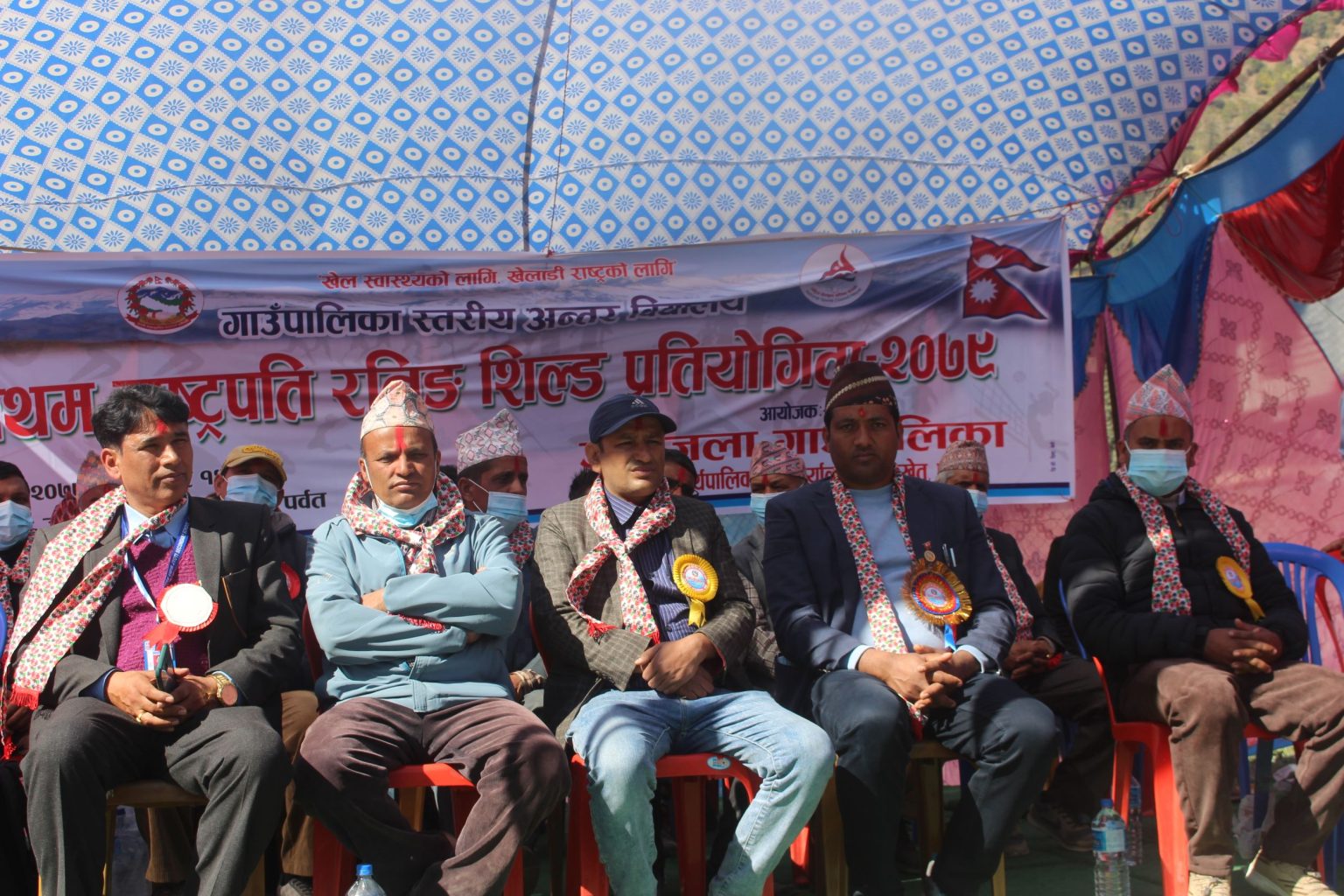 पर्वत – जलजला गाउँपालिकाको आयोजनामा अन्तर मावि स्तरिय प्रथम राष्ट्रपति रनिङ शिल्ड खेलकुद प्रतियोगिता सुरु भएको छ । जलजलाको वडानम्वर ४ स्थित मोहनचोकमा शुक्रबार देखि संचालित विद्यालयस्तरको खेलकुद प्रतियोगिताको उदघाटन गर्दै गाउँपालिका अध्यक्ष राजुप्रसाद आचार्यले राष्ट्रपति रनिङशिल्ड प्रतियोगिताले विद्यार्थीलाई शैक्षिक विकाससँगै खेलकुद क्षेत्रमा पनि अब्बल बनाउन महत्त्वपूर्ण भूमिका खेल्ने बताउनुभयो ।